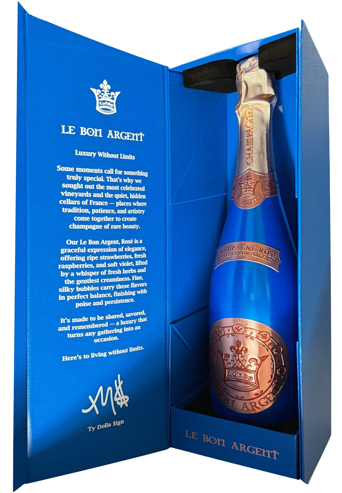 Experience the pinnacle of elegance with Le Bon Argent Champagne—a lifestyle brand endorsed by Ty Dolla$ign and trendsetting social media influencers. Crafted at the esteemed Ellner Estate in Epernay, France.